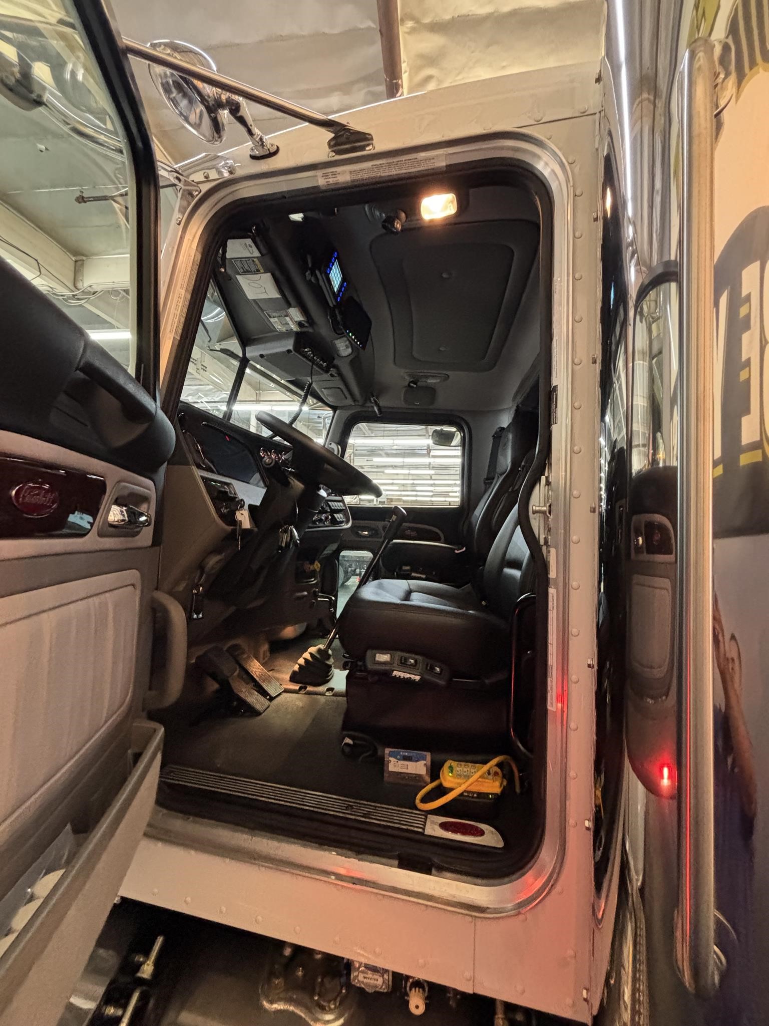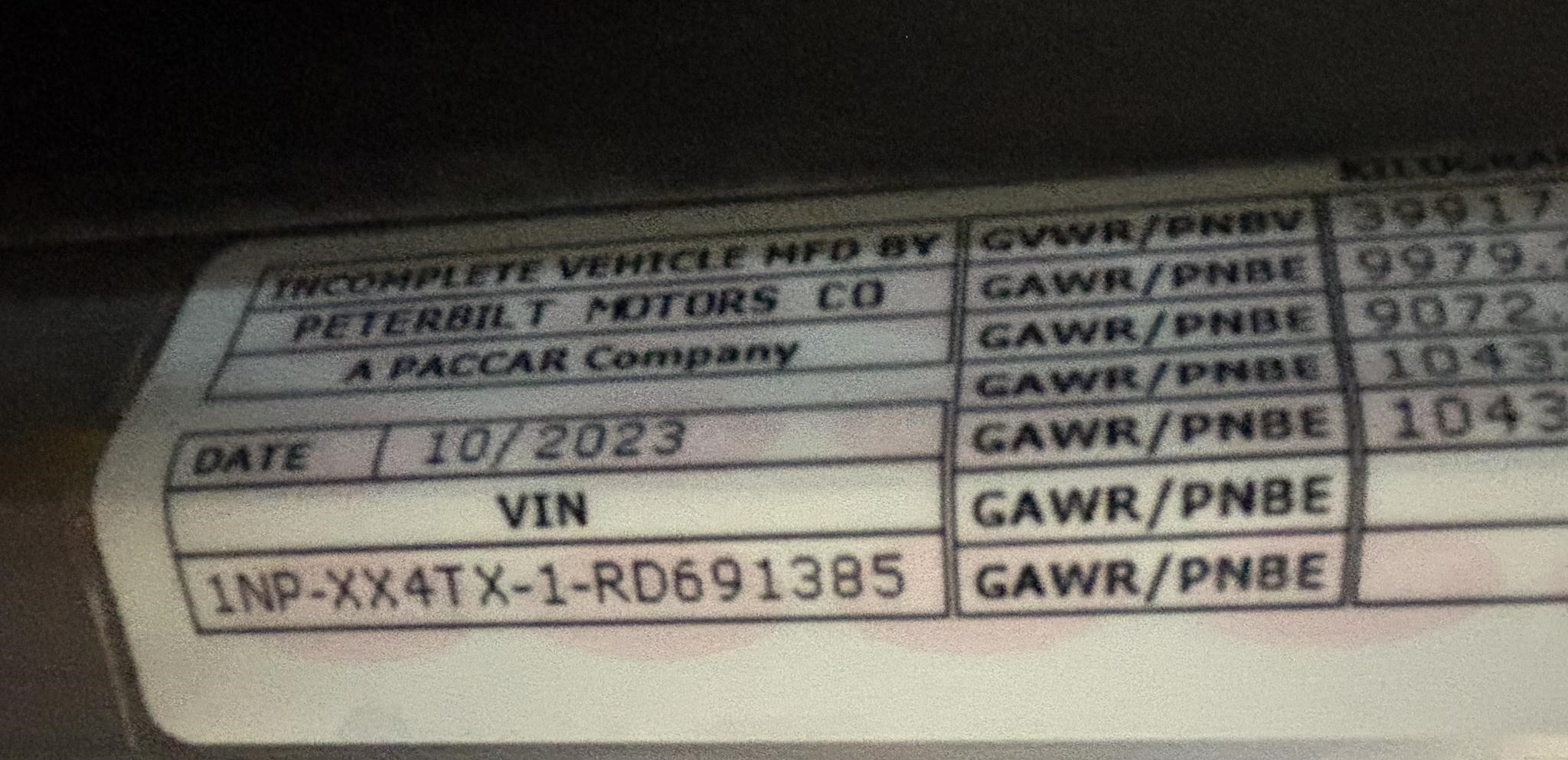 Pete 389 LONG HOOD> ISX15 605 HP 1950 Torque. Fuller RTLO16918B 18 Speed. .22,000 lb, 3.5in Drop,front axle. 23.000lb Front suspension. 26 in Aluminum 90 & 60 Gallon Fuel Tanks LH U/C, DEF Tank Small, Alum Cab 131in BBC Alum Hood SFFA, 10-3/4in Steel Rails 403-444in.Full Steel Inner Liner.Heavy-Duty Iron Front Spring Brackets Fwd & Rear.Dana Spicer 46,000 lb, Ratio 4.10 Rear Axle. Diff Lock Both Axles. SBM Valve. Synthetic Axle Lubricant All Rear Axles 52,000lbs,Neway 54in -Dual Leveling Valves Bendix AD-IS Air Dryer with Heater. Polished Alum Air Tanks Outside Frame Rails.Aluminum Space Saver Battery Box LH BOC.DPF Cab Entry Aluminum Non-Slip Step RH Under Cab. Heavy Duty External Tow Eye. Intebrake (Furnished on Engine).(2) 15in SS Air Cleaners, Cowl Mtd, SS Caps. Thermal Insulation Package in Cab.Thermal Insulation Pkg - Adjustable Steering Column - Tilt/Telescope.Leather Premiun Steering Wheel with Multi Functions. Platinum Interior - Grey . Power Lift Windows - Both Doors. Combo Fresh Air Heater/Air Conditioner. Cup Holder (Floor Mounted).Outside Sunvisor Stainless Steel. Aero Mirrors Ea Side Htd & Mtrzd 4-Way Adjustable. (4) Air Horns Rect-(2) 26in & (2) 29in. ConcertClass Audio System with Bluetooth.. Bright Bezel Gauges ipo Black. Woodgrain dash optionMarker Lights (5) Bus LED Bullet. Fog Lights (2) Peterbilt. (1) 6in Spotlight Round Halogen LH. Suspension Pressure Gauge. Stainless Steel Gravel Guards. 10 Inch Extension for Ultra Day Cab. Air Disc brake package. Diff. Lock Tandem Axles with Speed Inte. RLOCK -Upgrade Clutch Torque Capacity. Peterbilt Keyless Entry, Platinum Interior - Arctic Gray, with SmartNav. Rubber Floor ipo Carpet (Black Only)., Cobra 40 Channel CB Radio w/Integral Speaker, Unibilt Cab Air Suspension. (2) Peterbilt Fog Lights. Sears Atlas 80 high-back ultra-leather seats, black, for Driver and Passenger. : Pusher axle Tire. (4) BR 14ply 285/75R24.5 M726ELA 2,679 540, Front tires.: MN 20ply 385/65R22.5 X Multiway HD XZE. RR: BR 16ply 11R24.5 M726ELA, (1) non-steerable pusher axle. 44" Sleeper, Stainless Steel sleeper vents. block heater..Texas-style steel Chrome bumper. Stainless Steel visor, Midlevel speaker option cab, and Sleeper. SMARTLING. 24 months sub. option RAMI Multi band Attentas. Wheelbase 360" two-stage paint metallic Pearl 86,600 GVWR