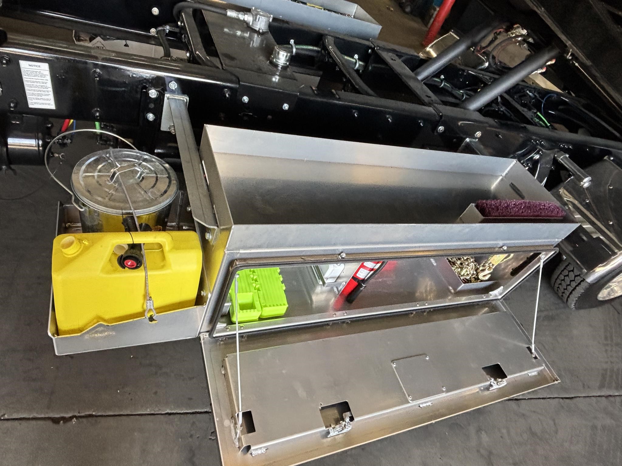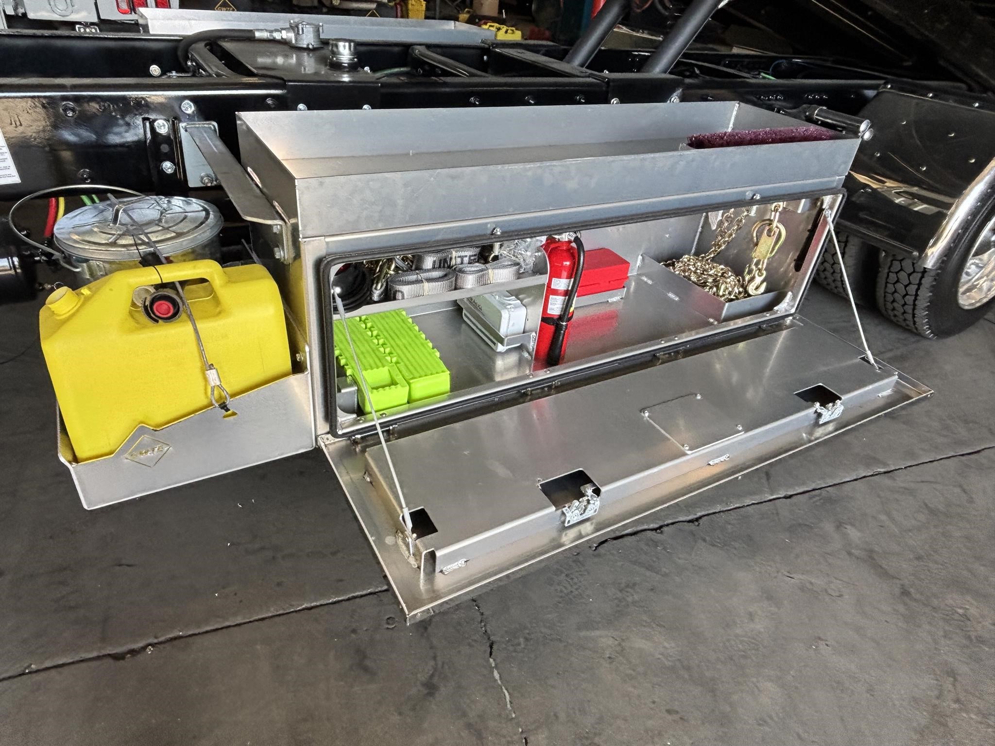 M-2 Alum. 132" BBC Cab; Cummins 6.7L Engine 260HP 660lbs Torque. Cummins Exhaust brake.Horton HT650 Frontal Air On/off Engine fan. Clutch. 2100 RDS Automatic Transmission 6 Speed. Phillips-TEMRO 750 Watt/115 Volt block heater. dash Mounted T-Handle Cable Shift Control w/ park brake position. Synthetic Transmission Fluid.Synthetic 75W-90 Front Axle lube 10,000# front suspension. ARS-19.0-2 19,000# R-SERIES single rear axle. 4.88 Rear Axle Ratio.SYNTHETIC 75W-90 rear Axle lube. Airliner 18,000# Rear Suspension. Manual Dump Valve for Air Suspension. - Air brake package. Air Dryer w/Heater. 120KSI (Frame). 50 Gallon/Rectangular fuel tank aluminum: Alliance Fuel filter/Water separator with Primer pump. 255/70R22.5 Tires. Alum. 22.5X8.25 10-Hub pilot disc wheels. Dual West Coast Bright mirrors. 8" bright finish convex mirrors mounted under primary mirrors. Non-operating wing windows. Opal Gray Vinyl Interior. (2) Cup Holders; Heater, Defroster & Air Conditioner. Power windows. Single passenger seat. Air ride driver seat, Rear bench seat. Adjustable Tilt and Telescoping Steering Column. (6) IGN Controlled Extra Switches to junction block AND 1 Circuit at 30 Amp. Windshield Wiper motor with Delay marker light Switches self-canceling turn signal Switch with dimmer, Washer/Wiper & Hazard in Handle. Idle up, Cruise control. 22.5 Aluminum wheels 25,500 GVWR.