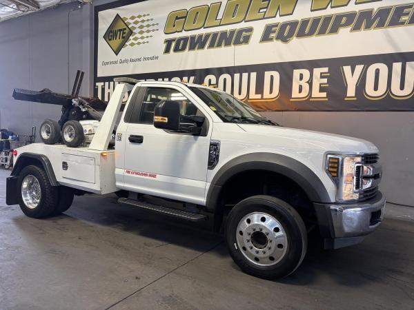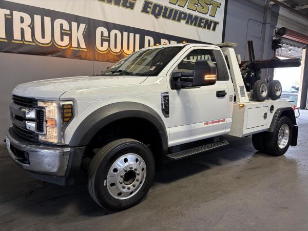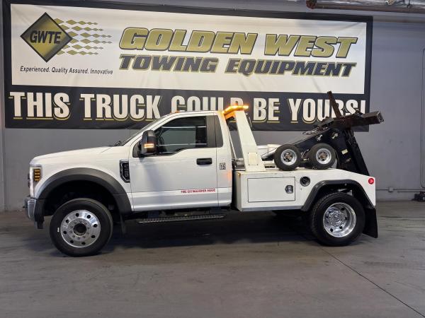 2019 Ford F-450 XL V-10 Gas - Automatic, Idle-Up Cruise, Power Group, Chrome Bumper, Cab Steps, 40/20/40 Split Bench. aluminum wheels, 19.5 225/70R tires. 16,500 GVWRJerr Dan MPL-NGS Self-Loader with inside cab controls. 8,000 Ramsey winch.