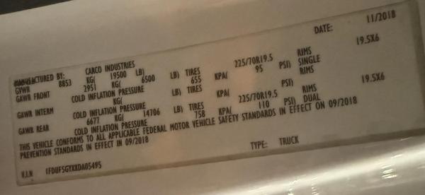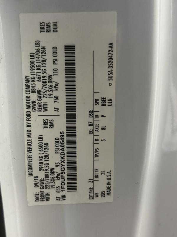 2017 Ford F-550 XL 6.8 335HP 6.8L V-10 Gas. 6 speed Automatic. 40/20/40 Split bench seat. Chrome bumper, Chrome Grille, Idle Up, Cruise control, Tilt wheel, Power windows, Power locks. AM/FM , Aux Switches, Cab Steps, 225/70R 19.5 Tires Chrome bumper, Chrome Grille, Aluminum wheels, 19.5 225/70R Tires.. 19,500 GVWR.I