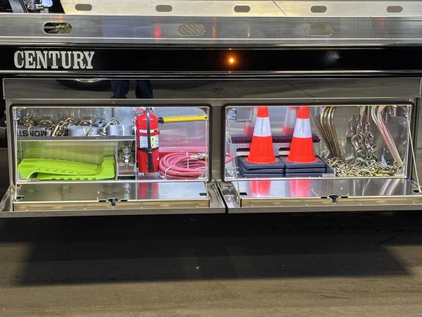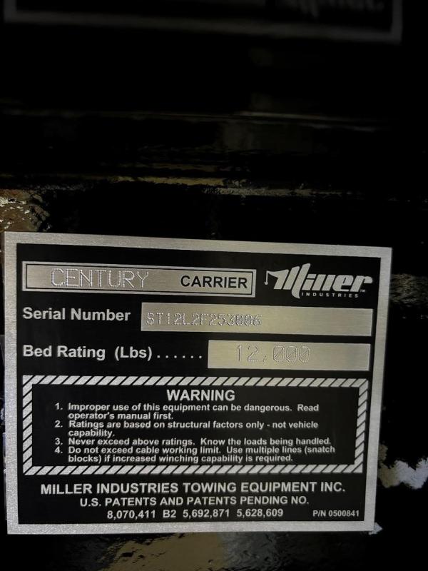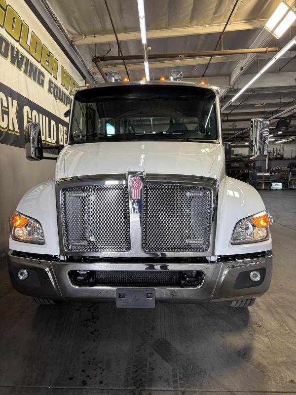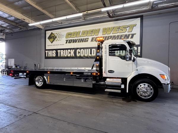 2025 Kenworth 280 Model. PX-7 300HP. Allison RDS-2500 push button, 6-speed. Air brake package. Exhaust Brake.. Air Dryer with heater. 56-gallon Aluminum D Tank. Stainless visor. Power windows, power locks, Power Mirrors, 10,000 lb front axle. 20,000lb Rear axle. 21,000lb Air leaf suspension with Dump valve. Air-ride driver's seat, two-man passenger seat. Tilt- telescope wheel. Air horns. AM/FM USB Bluetooth radio, A/C. Cup holder, Idle up, Cruise control. 255/70R 22.5 Tires. Aluminum wheels. PTO Switch Air Dryer with heater, 3-piece Chrome bumper, Thermal Insulation cab. Keyless entry., Day cab Rear Windows, look down the window. pass side, USB Port, fog lamps. .. .26,000lb GVWRCentury 21.5' Steel LCG (Low Center of Gravity) Carrier w/ Wheel Lift, 3/16 Deck Plate, 3x2 Corten Tube Crossmembers on 8 inch Centers, (4) Rear Chain Locks, (2) Front Chain Locks, (6) Floor Plate Chain Locks (3 per side), 8,000lb Worm Gear Winch, 3/8" x 50' Winch Cable, Illuminated Dual Controls, FMVSS 108 Lamp Group Shock Mounted Lighted, Direct Mount Pump, Cable Roller Guide w/ Tensioner, Winch Free Spool Extension, Back-Up Alarm, (2) Safety Chains, Mechanical Anti-tilt, Black Body Paint, 102" Wide Body, Inboard Tilt Cylinders, Floor Level Roll Formed w/ Punched Stake Pockets, 4,000lb Wheel Lift w/ Releasable L Arms, Fully Hydraulic Wheel Lift, (2) Safety Straps & Ratchets, (2) Rear Safety Chains, Body Lock w/ Nylatron Roller Bearings, & 12,000lb Deck Load Rating. Body Serial #