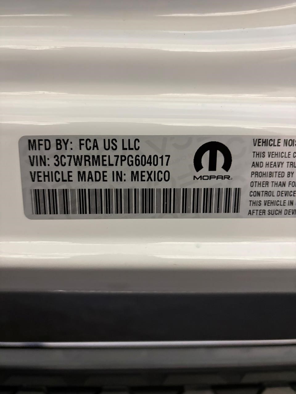 - VIN: 3C7WRMEL7PG604017
