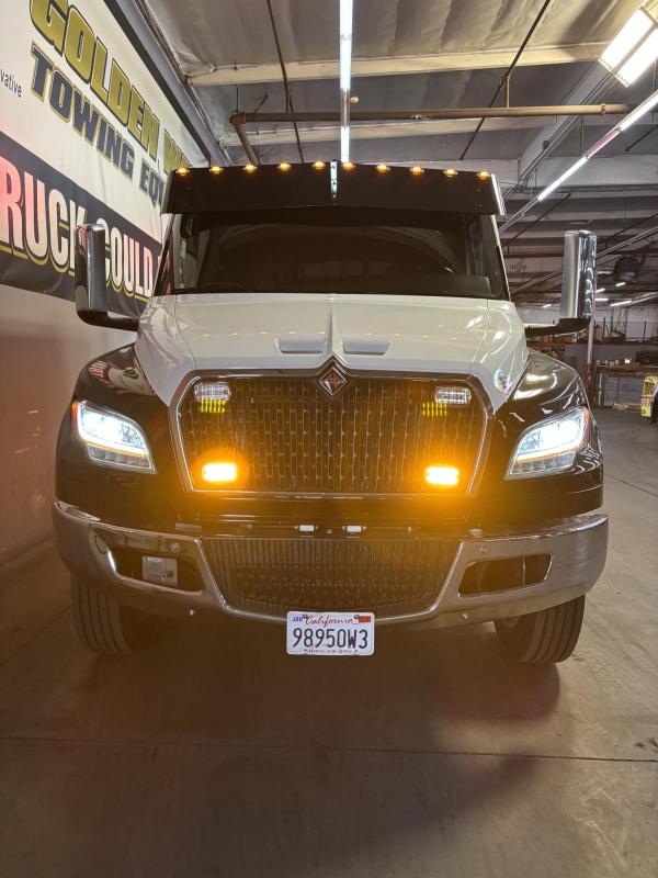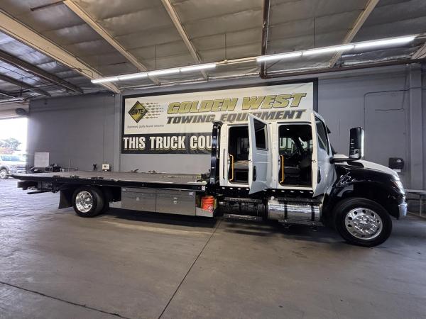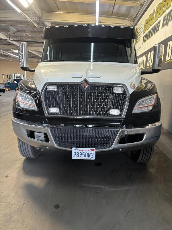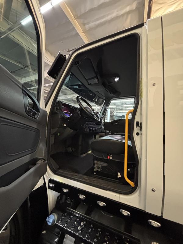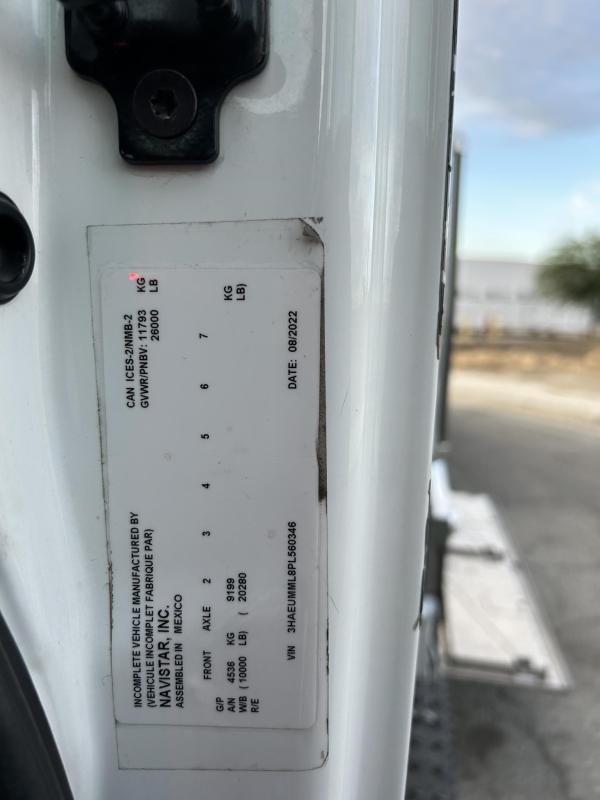 2023 International Model MV Crew cab. Cummins ISB 6.7L, 325HP @ 2,300 rpm, 750 lb-ft @ 1,600 rpm, Allison RDS-3000 6 Speed Auto, Air Brakes, Air Dryer Heater, Exhaust Brake, Front Axle: Dana-Spicer I-Beam 10,000lb w/ Shock Absorbers, Rear Axle: Dana-Spicer 21,000lb rear differential lock. , 21,000lb Air Ride Suspension, 4.88 Rear Axle Ratio, Chrome Bumper, black Grille, Air Ride Driver Seat,& Passenger Seat, rear bench seat. Idle Up, Cruise Control, Tilt-Wheel, AM/FM/CD/MP3 w/ Bluetooth, Air Horn, Engine Block Heater, Dual -50 Gal Alum Fuel Tanks, 7 Gal DEF Tank, Power Windows, Power Door Locks, Power heated Mirrors. A/C, 255/70R22.5 Tires w/ 22.5 Alum Wheels, Cup holders.Visor 25,500 GVWRKeyless Entry, Chrome Grab handles on Cab. Air Disc Package.