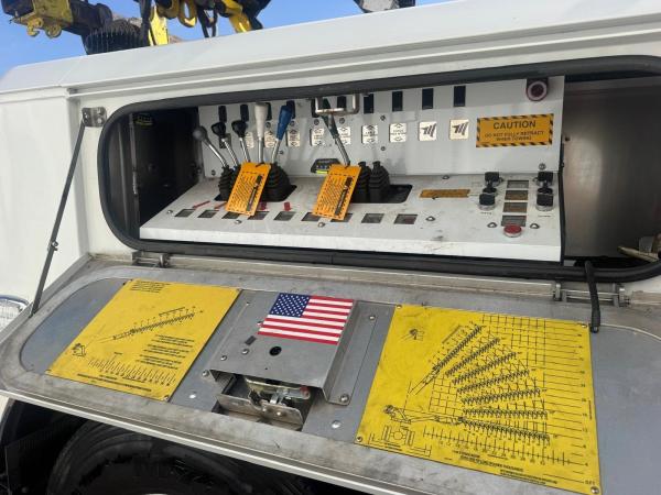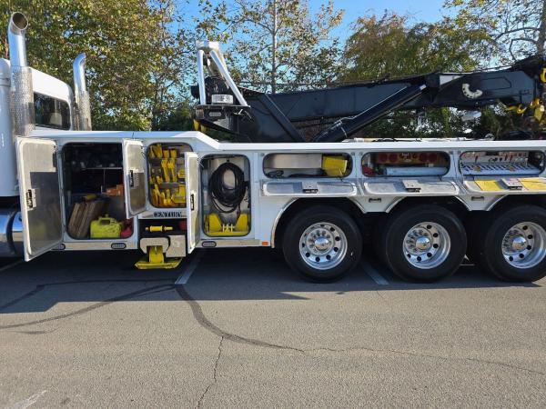Pete 389 Extended cab. ISX15 565 HP Fuller RTLO16918B 18 Speed. .20,000 lb, 3.5in Drop, 20.000lb Front suspension. 26 in Aluminum 135 Gallon Fuel Tank LH U/C, DEF Tank Small, Alum Cab 123in BBC Alum Hood SFFA, 10-3/4in Steel Rails 403-444in.Full Steel Inner Liner.Heavy-Duty Iron Front Spring Brackets Fwd & Rear.Dana Spicer 46,000 lb, Ratio 3.91 Rear Axle. Diff Lock Both Axles. SBM Valve. Synthetic Axle Lubricant All Axles.Neway ADZ252 52,000 lbs, 54in -Dual Leveling Valves Bendix AD-IS Air Dryer with Heater. Polished Alum Air Tanks Outside Frame Rails.Aluminum Space Saver Battery Box LH BOC.DPF Cab Entry Aluminum Non-Slip Step RH Under Cab. Heavy Duty External Tow Eye. Intebrake (Furnished on Engine).(2) 13in SS Air Cleaners, Cowl Mtd, SS Caps. Thermal Insulation Package in Cab.Thermal Insulation Pkg - Adjustable Steering Column - Tilt/Telescope.Leather Steering Wheel. Platinum Interior - Grey . Power Lift Windows - Both Doors. Combo Fresh Air Heater/Air Conditioner. Cup Holder (Floor Mounted).Outside Sunvisor Stainless Steel. Aero Mirrors Ea Side Htd & Mtrzd 4-Way Adjustable. (4) Air Horns Rect-(2) 26in & (2) 29in. ConcertClass Audio System with CD. Bright Bezel Gauges ipo Black. Marker Lights (5) Bus LED Bullet. Fog Lights (2) Peterbilt. (1) 6in Spotlight Round Halogen LH.345" Wheelbase. Suspension Pressure Gauge. Stainless Steel Gravel Guards. 10 Inch Extension for Ultra Day Cab. Air Disc brake package. Diff. Lock Tandem Axles with speed Inte. RLOCK -Upgrade Clutch Torque Capacity. Peterbilt Keyless Entry, Platinum Interior - Arctic Gray, with SmartNav. Rubber Floor ipo Carpet (Black Only)., Cobra 40 Channel CB Radio w/Integral Speaker, Unibilt Cab Air Suspension. (2) Peterbilt Fog Lights. : Pusher axle Tire. (4) BR 14ply 285/75R24.5 M726ELA 2,679 540, Front tires.: MN 20ply 385/65R22.5 X Multiway HD XZE. RR: BR 16ply 11R24.5 M726ELA, (1) non-steerable pusher axle. 345" Wheelbase. 86,600 GVWR Keyless entryCentury 1140