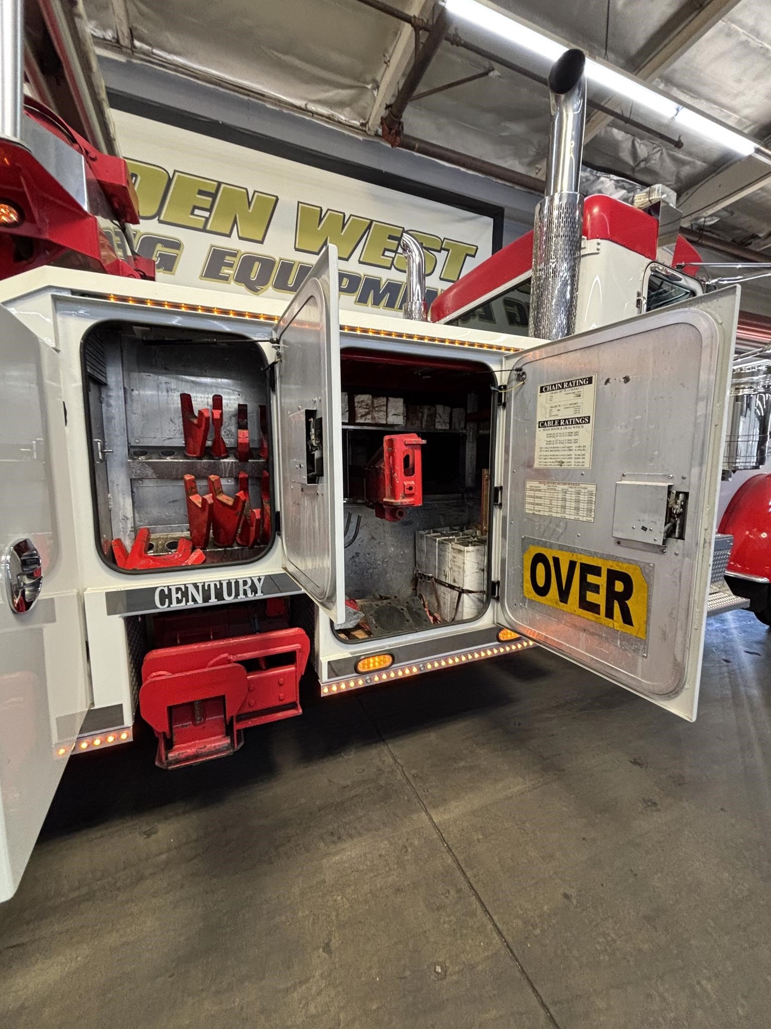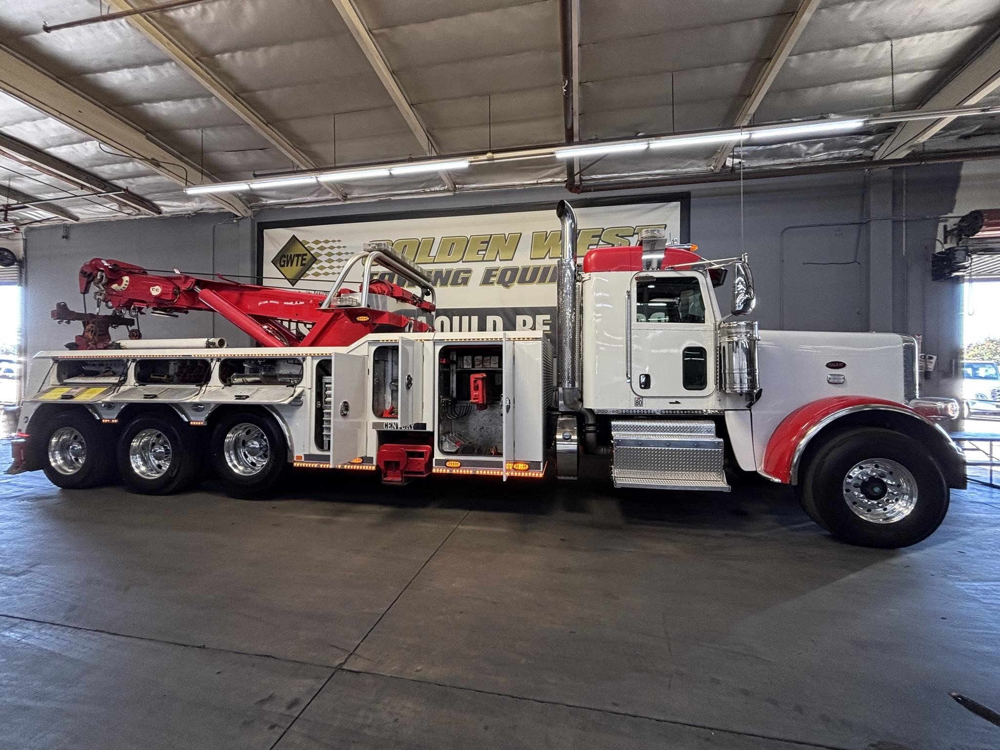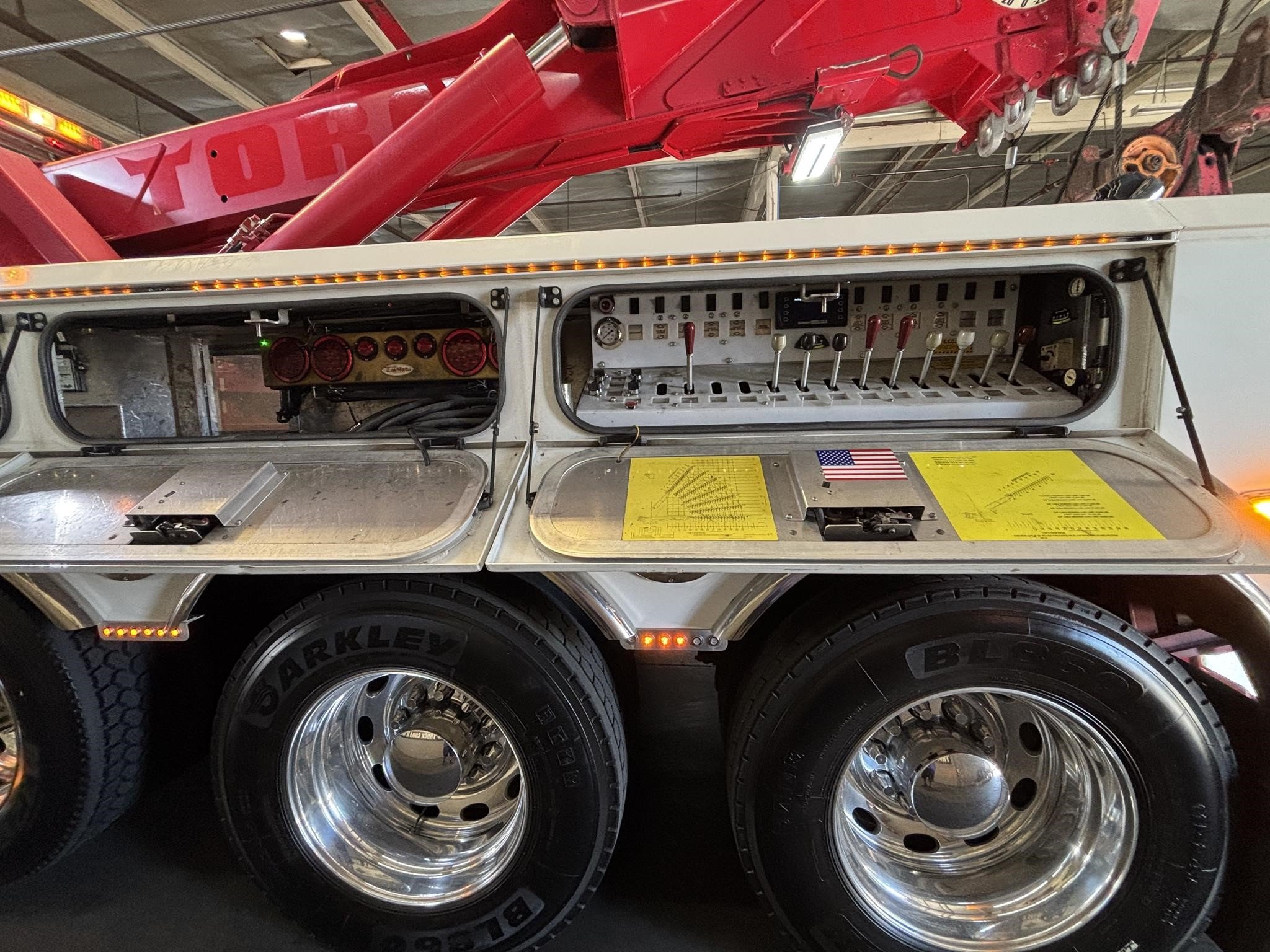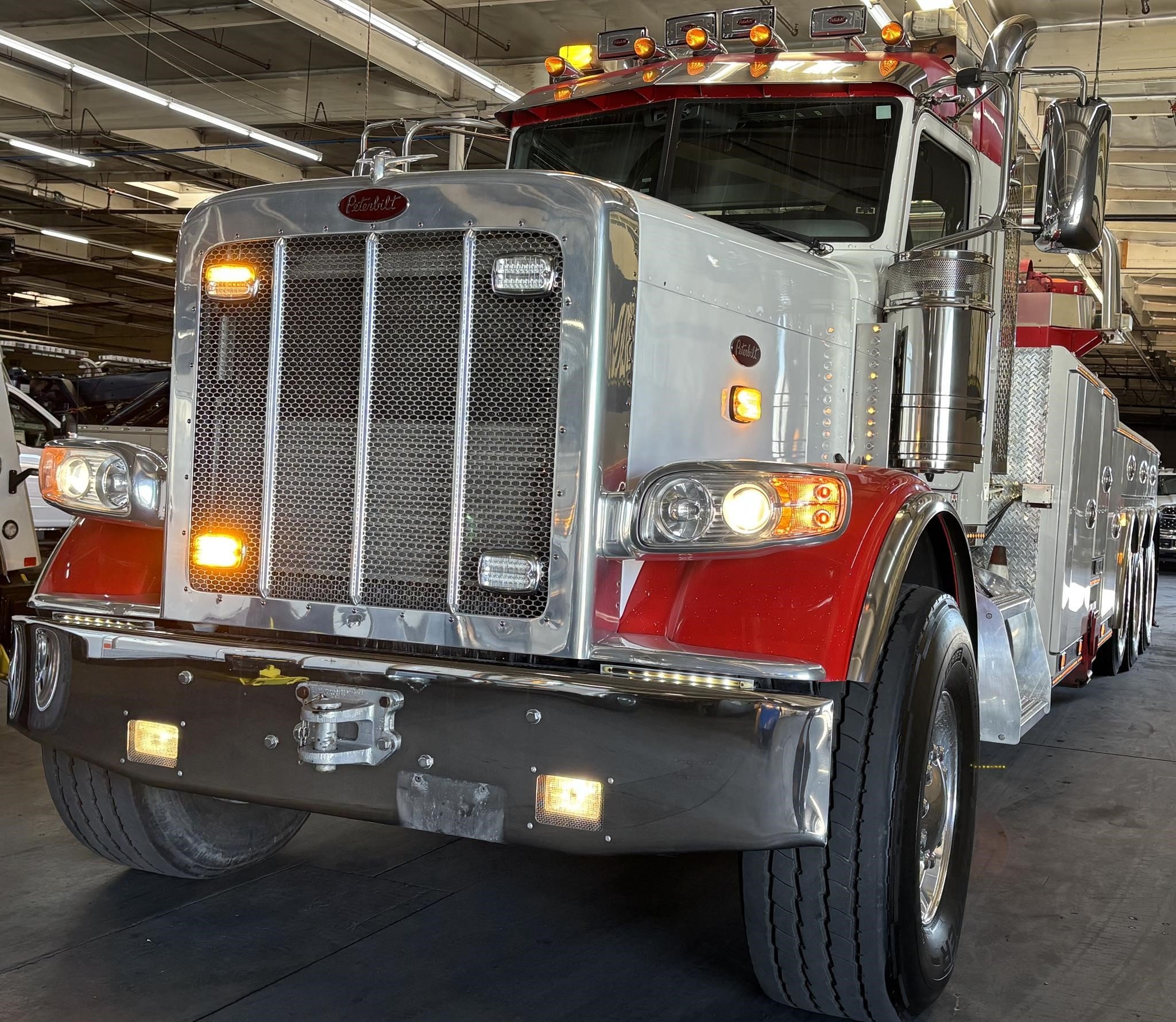 Pete 389 Extended cab. ISX15 565 HP Fuller RTLO16918B 18 Speed. .20,000 lb, 3.5in Drop, 20.000lb Front suspension. 26 in Aluminum 135 Gallon Fuel Tank LH U/C, DEF Tank Small, Alum Cab 123in BBC Alum Hood SFFA, 10-3/4in Steel Rails 403-444in.Full Steel Inner Liner.Heavy-Duty Iron Front Spring Brackets Fwd & Rear.Dana Spicer 46,000 lb, Ratio 3.91 Rear Axle. Diff Lock Both Axles. SBM Valve. Synthetic Axle Lubricant All Axles.Neway ADZ252 52,000 lbs, 54in -Dual Leveling Valves Bendix AD-IS Air Dryer with Heater. Polished Alum Air Tanks Outside Frame Rails.Aluminum Space Saver Battery Box LH BOC.DPF Cab Entry Aluminum Non-Slip Step RH Under Cab. Heavy Duty External Tow Eye. Intebrake (Furnished on Engine).(2) 13in SS Air Cleaners, Cowl Mtd, SS Caps. Thermal Insulation Package in Cab.Thermal Insulation Pkg - Adjustable Steering Column - Tilt/Telescope.Leather Steering Wheel. Platinum Interior - Grey . Power Lift Windows - Both Doors. Combo Fresh Air Heater/Air Conditioner. Cup Holder (Floor Mounted).Outside Sunvisor Stainless Steel. Aero Mirrors Ea Side Htd & Mtrzd 4-Way Adjustable. (4) Air Horns Rect-(2) 26in & (2) 29in. ConcertClass Audio System with CD. Bright Bezel Gauges ipo Black. Marker Lights (5) Bus LED Bullet. Fog Lights (2) Peterbilt. (1) 6in Spotlight Round Halogen LH.345" Wheelbase. Suspension Pressure Gauge. Stainless Steel Gravel Guards. 10 Inch Extension for Ultra Day Cab. Air Disc brake package. Diff. Lock Tandem Axles with speed Inte. RLOCK -Upgrade Clutch Torque Capacity. Peterbilt Keyless Entry, Platinum Interior - Arctic Gray, with SmartNav. Rubber Floor ipo Carpet (Black Only)., Cobra 40 Channel CB Radio w/Integral Speaker, Unibilt Cab Air Suspension. (2) Peterbilt Fog Lights. : Pusher axle Tire. (4) BR 14ply 285/75R24.5 M726ELA 2,679 540, Front tires.: MN 20ply 385/65R22.5 X Multiway HD XZE. RR: BR 16ply 11R24.5 M726ELA, (1) non-steerable pusher axle. 345" Wheelbase. 86,600 GVWR