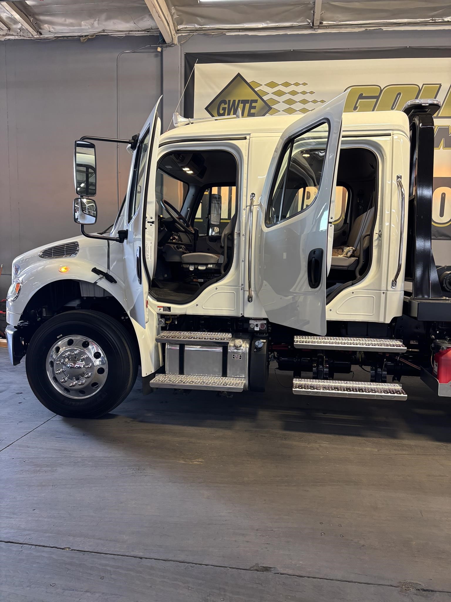 2024 FRTR M-2 154" BBC Cab High Roof. 360HP L9 1150lbs or Torque, EATON FULLER FRO-14210C 10 speed with overdrive. 3 Stage C Brake- Jacobs. 12,000lb front axle. 12,000lb front suspension. 21,000lb Rear axle, 4.11 Rear End ratio. Driver-controlled locking rear differential. block heater. Air dryer. 275/80R 22.5 Tires. Aluminum wheels. Chrome 3-piece bumper. Dual grab handles side of cab. Premium Springhausen highback air Suspension driver and Passenger seats with 2 Air lumbar, Integrated cushion extension, with Arm rests, Tilt & & adjustable. Folding Rear bench seat. Idle up, Cruise control. Air cab mounts.Dual 26" Hadley Air Horns. LED headlights, Heated Power Mirrors. Composite Sunvisor, RH* LH Operating wing windows. Power door locks. Tilt & Telescoping wheel. Woodgrain dash option. dash mounted PTO Switch. AM/FM/WB world tuner radio with sirus XM bluetooth ipod interface, USB & auxilary inputs dash mounted radio, 2 speakers in cab.