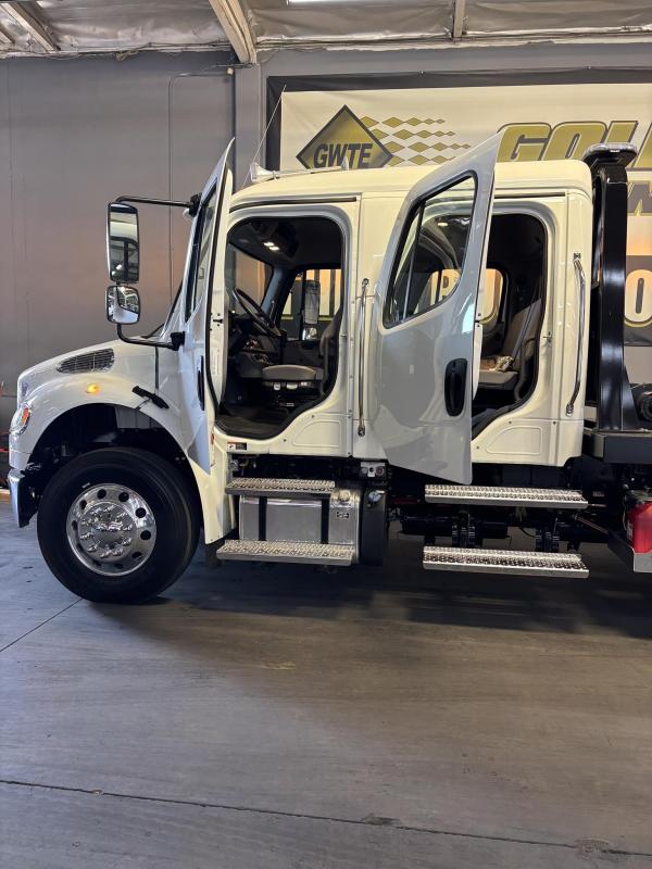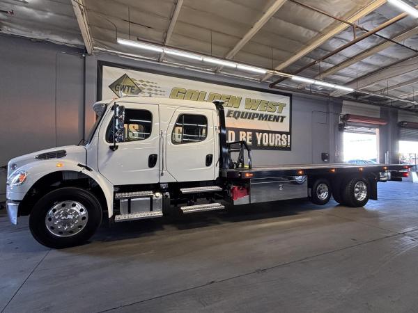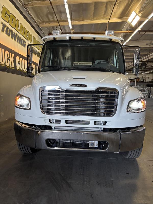 2024 FRTR M-2 154" BBC Cab High Roof. 360HP L9 1150lbs or Torque, EATON FULLER FRO-14210C 10 speed with overdrive. 3 Stage C Brake- Jacobs. 12,000lb front axle. 12,000lb front suspension. 21,000lb Rear axle, 4.11 Rear End ratio. Driver-controlled locking rear differential. block heater. Air dryer. 275/80R 22.5 Tires. Aluminum wheels. Chrome 3-piece bumper. Dual grab handles side of cab. Premium Springhausen highback air Suspension driver and Passenger seats with 2 Air lumbar, Integrated cushion extension, with Arm rests, Tilt & & adjustable. Folding Rear bench seat. Idle up, Cruise control. Air cab mounts.Dual 26" Hadley Air Horns. LED headlights, Heated Power Mirrors. Composite Sunvisor, RH* LH Operating wing windows. Power door locks. Tilt & Telescoping wheel. Woodgrain dash option. dash mounted PTO Switch. AM/FM/WB world tuner radio with sirus XM bluetooth ipod interface, USB & auxilary inputs dash mounted radio, 2 speakers in cab.LCG Series 20, 24' Deck - Load Rating