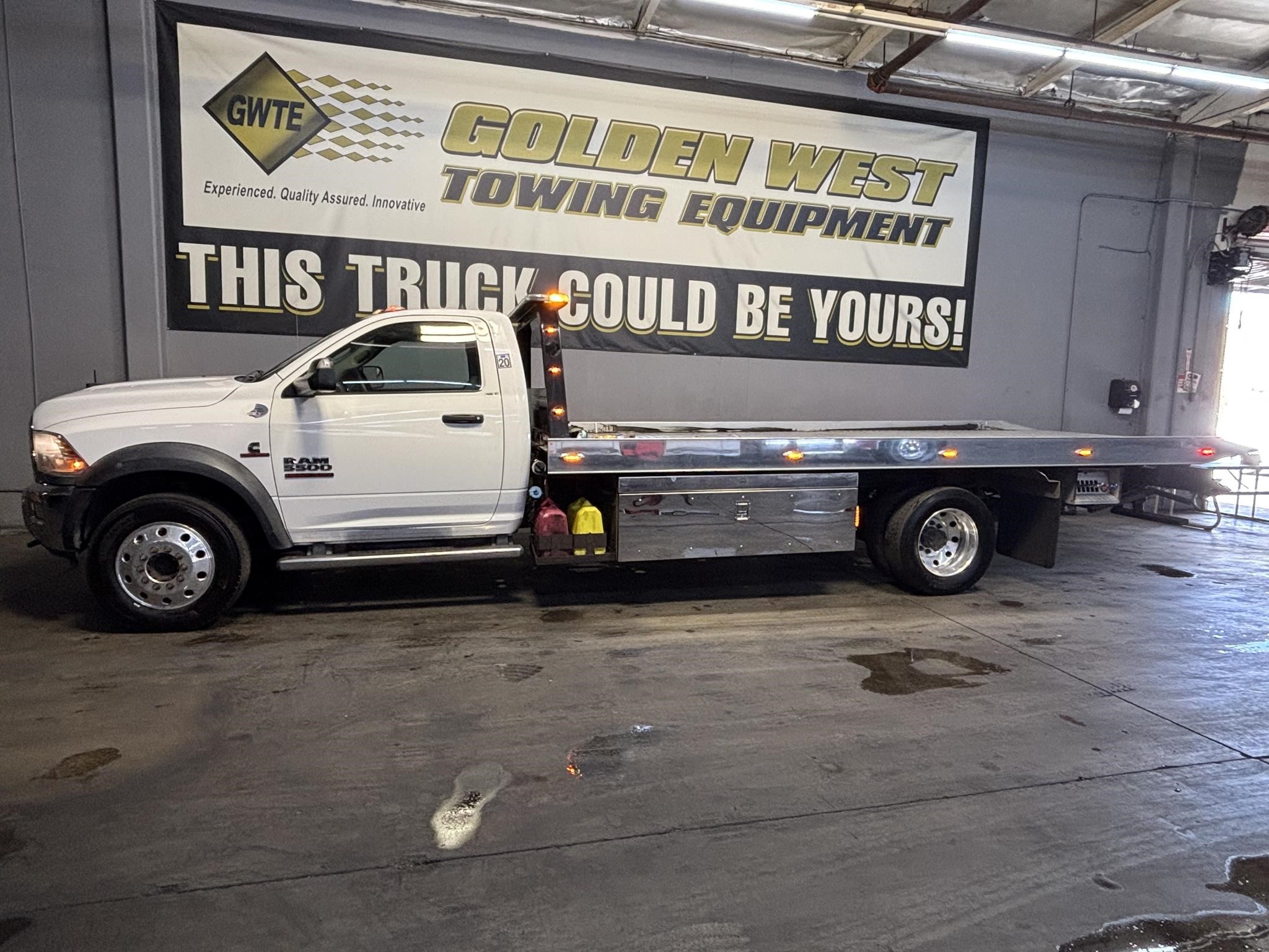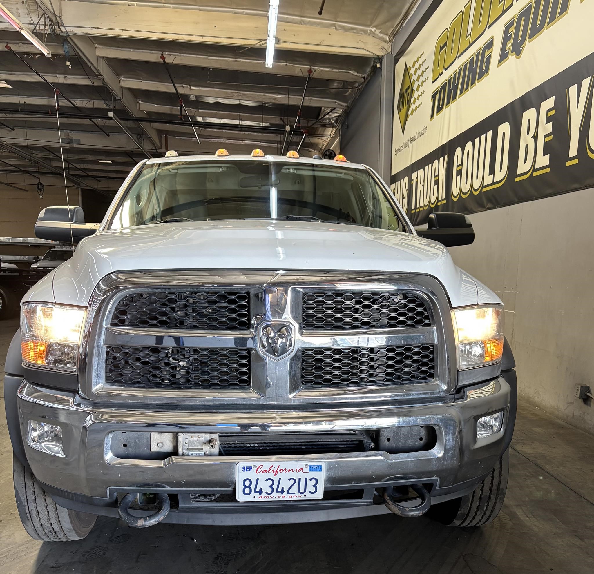 RAM 5500 SLT Reg Cab w/ Cummins 4x4 package 6.7L I-6 OHV Direct Diesel Injection, 24 Valve Intercooled Turbo, 325HP @ 3,000 rpm, 750 lb-ft @ 1,600 rpm, 136 amp Alternator, 6 Speed Automatic Aisin AS68RC, Exhaust brake. Engine Block Heater, 120" CA, 4 Wheel Disc Brakes w/ Front and rear Vented Discs, Non-Independent Front Suspension, Rear Leaf Suspension, 4 Wheel Anti-Lock Braking System, Daytime Running Lights, Dual Air Bags, A/C, 5" Touch Screen AM/FM/CD Radio, Cruise Control, Power Windows, Power Door Locks, 40-20-40 Split Bench Seat, Vinyl Black Material, Upfitter Switches (5). 19,500 GVWR, Chrome Cab Steps, 22 Gal Fuel Tank, 225/70R19.5 Tires w/ 19.5 Alum Wheels, Transfer case skid plate..