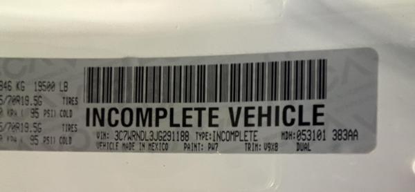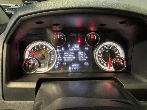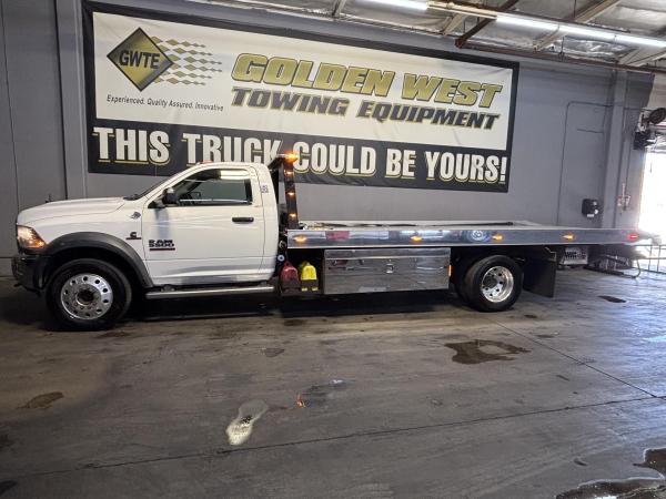 RAM 5500 SLT Reg Cab w/ Cummins 4x4 package 6.7L I-6 OHV Direct Diesel Injection, 24 Valve Intercooled Turbo, 325HP @ 3,000 rpm, 750 lb-ft @ 1,600 rpm, 136 amp Alternator, 6 Speed Automatic Aisin AS68RC, Exhaust brake. Engine Block Heater, 120" CA, 4 Wheel Disc Brakes w/ Front and rear Vented Discs, Non-Independent Front Suspension, Rear Leaf Suspension, 4 Wheel Anti-Lock Braking System, Daytime Running Lights, Dual Air Bags, A/C, 5" Touch Screen AM/FM/CD Radio, Cruise Control, Power Windows, Power Door Locks, 40-20-40 Split Bench Seat, Vinyl Black Material, Upfitter Switches (5). 19,500 GVWR, Chrome Cab Steps, 22 Gal Fuel Tank, 225/70R19.5 Tires w/ 19.5 Alum Wheels, Transfer case skid plate..Inspection notes: Tires; front 14/32 14/32 Rear 14/32 Brakes