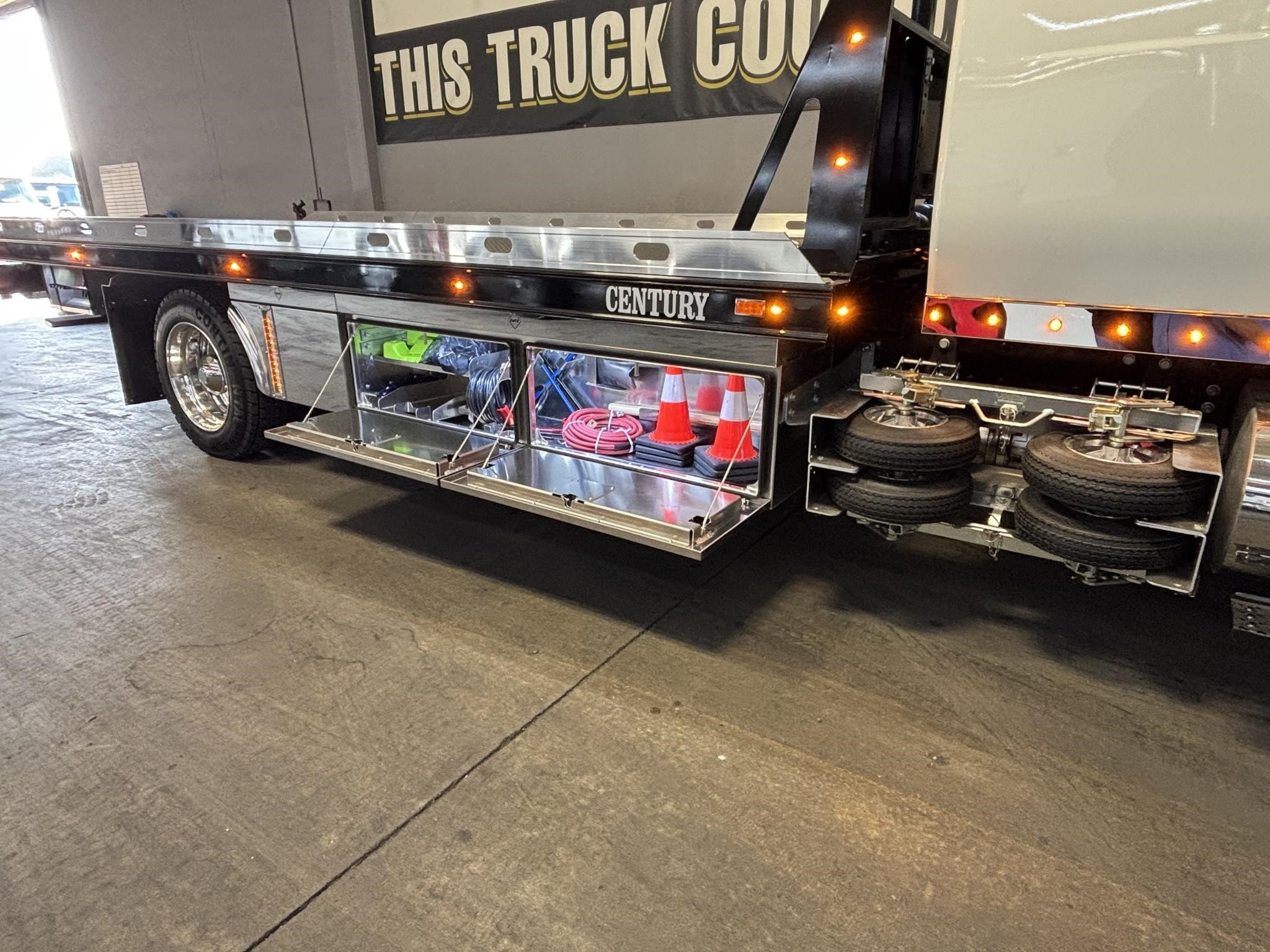 Century Steel LCG (Low Center of Gravity) Carrier w/ Wheel Lift, 3/16 Deck Plate, 3x2 Corten Tube Crossmembers on 8 inch Centers, (4) Rear Chain Locks, (2) Front Chain Locks, (6) Floor Plate Chain Locks (3 per side), 8,000lb Worm Gear Winch, 3/8" x 50' Winch Cable, Illuminated Dual Controls, FMVSS 108 Lamp Group Shock Mounted Lighted, Direct Mount Pump, Cable Roller Guide w/ Tensioner, Winch Free Spool Extension, Back-Up Alarm, (2) Safety Chains, Mechanical Anti-tilt, Black Body Paint, 102" Wide Body, Inboard Tilt Cylinders, Floor Level Roll Formed w/ Punched Stake Pockets, 4,000lb Wheel Lift w/ Releasable L Arms, Fully Hydraulic Wheel Lift, (2) Safety Straps & Ratchets, (2) Rear Safety Chains, Body Lock w/ Nylatron Toller Bearings, & 12,000lb Deck Load Rating. Body SN# ST12L2D251835