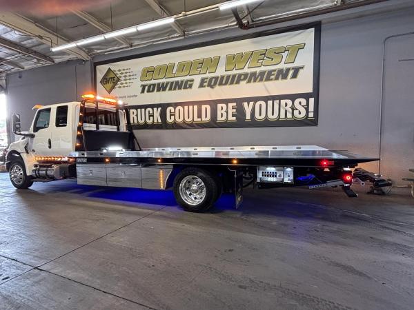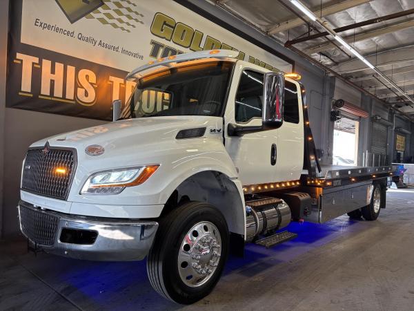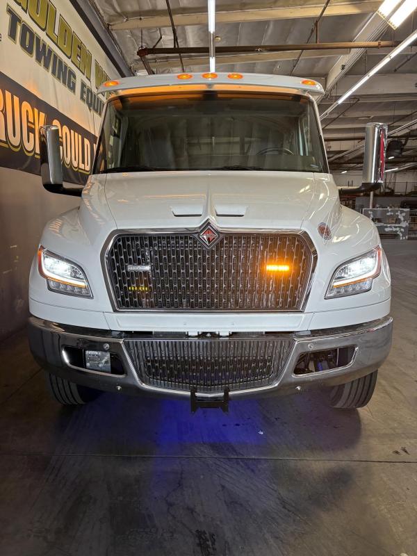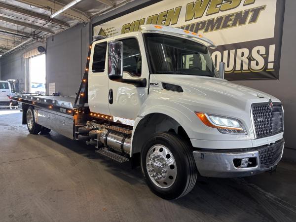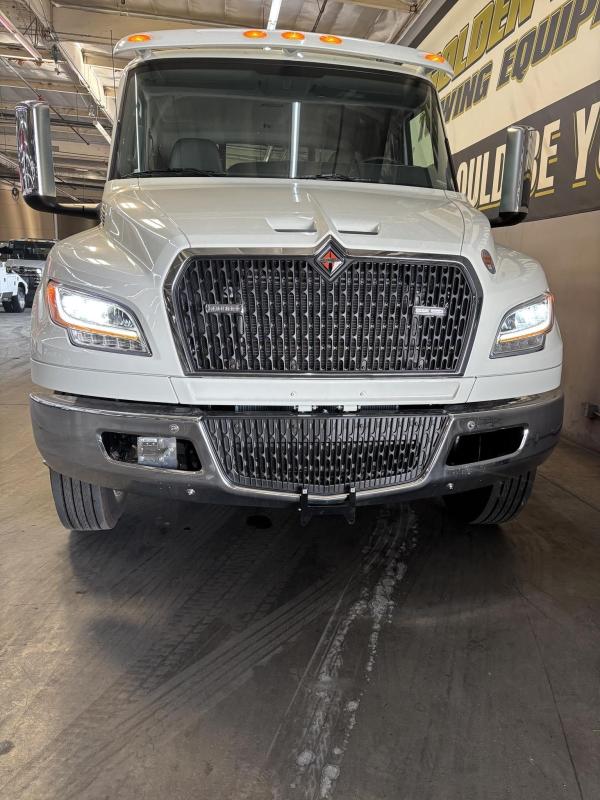 2026 International Model MV Extended cab. Cummins ISB 6.7L, 260HP @ 2,300 rpm, 660 lb-ft @ 1,600 rpm, Allison RDS-2200 6 Speed Auto, Air Brakes, Air Dryer Heater, Exhaust Brake, Front Axle: Dana-Spicer I-Beam 8,000lb w/ Shock Absorbers, Rear Axle: Dana-Spicer 19,000lb rear axle.. , 20,000lb Air Ride Suspension, 4.88 Rear Axle Ratio, Chrome Bumper, black Grille, Air Ride Driver Seat,& Passenger Seat, rear bench seat. Idle Up, Cruise Control, Tilt-Wheel, AM/FM/CD/MP3 w/ Bluetooth, Air Horn, Engine Block Heater, Dual 40-50 Gal Alum Fuel Tanks, 7 Gal DEF Tank, Power Windows, Power Door Locks, Power heated Mirrors. A/C, 255/70R22.5 Tires w/ 22.5 Alum Wheels, Cup holders.Visor 25,500 GVWR,Extended Warranties.- Engine Warranty: 5 yr / 300k miles PPI & after treatment, and Tranny Warranty: 7 yr / Unlimited Miles.