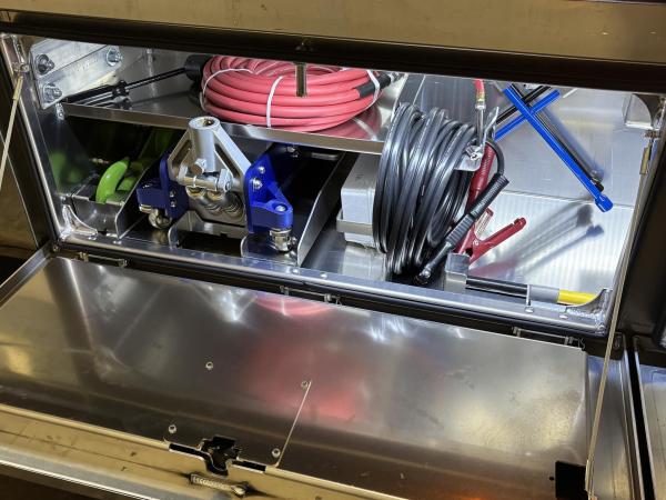 INSTALL FIRE EXTINGUISHER DOWN TO THE TOOL BOX FLOOR.