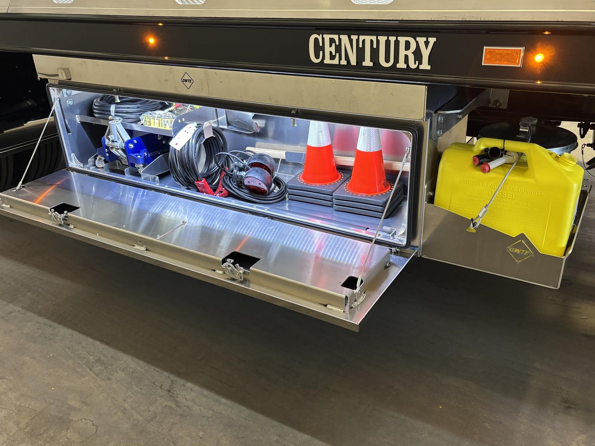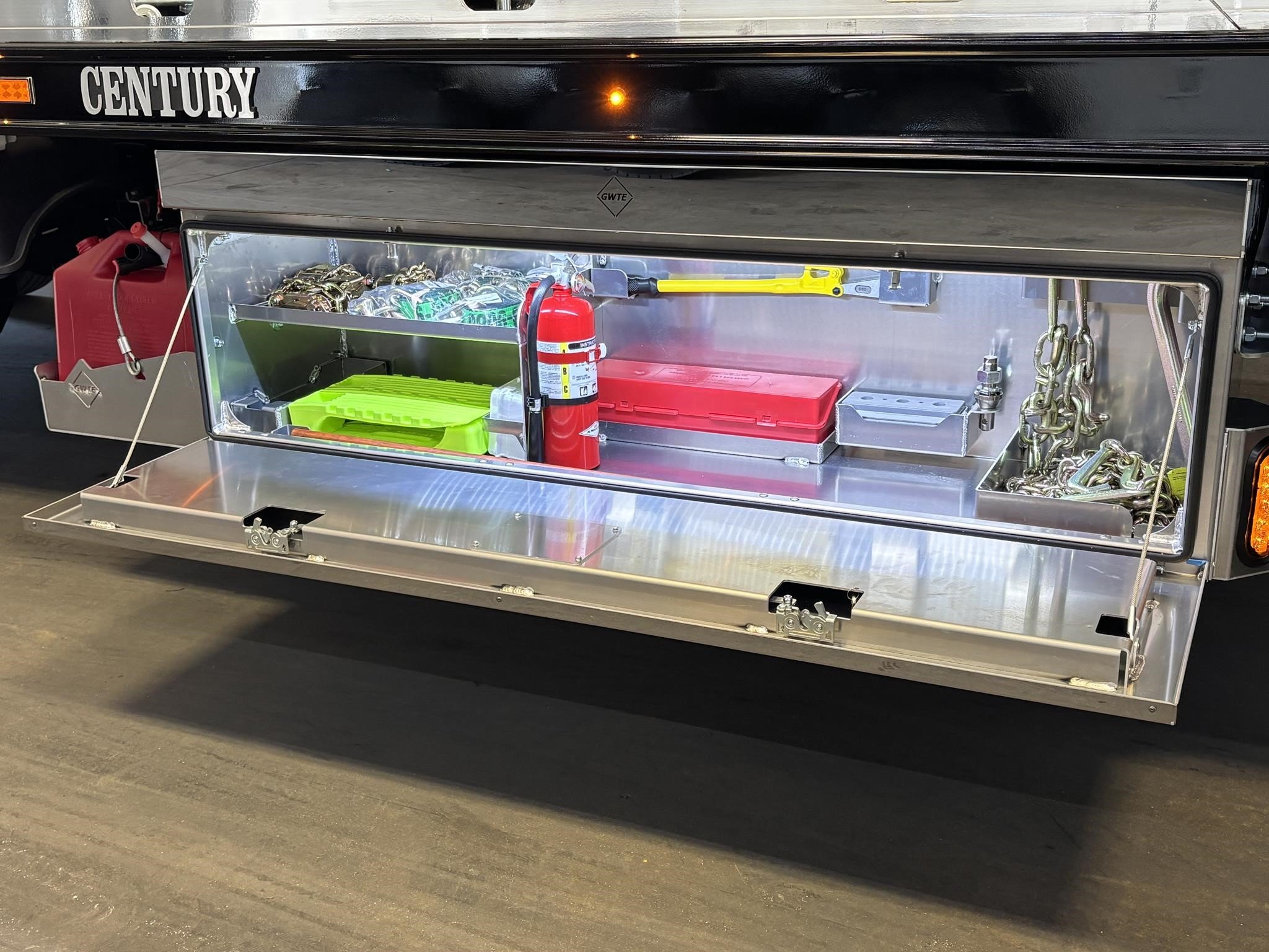 Century 21.5' Steel LCG (Low Center of Gravity) Carrier w/ Wheel Lift, 3/16 Deck Plate, 3x2 Corten Tube Crossmembers on 8 inch Centers, (4) Rear Chain Locks, (2) Front Chain Locks, (6) Floor Plate Chain Locks (3 per side), 8,000lb Worm Gear Winch, 3/8" x 50' Winch Cable, Illuminated Dual Controls, FMVSS 108 Lamp Group Shock Mounted Lighted, Direct Mount Pump, Cable Roller Guide w/ Tensioner, Winch Free Spool Extension, Back-Up Alarm, (2) Safety Chains, Mechanical Anti-tilt, Black Body Paint, 102" Wide Body, Inboard Tilt Cylinders, Floor Level Roll Formed w/ Punched Stake Pockets, 4,000lb Wheel Lift w/ Releasable L Arms, Fully Hydraulic Wheel Lift, (2) Safety Straps & Ratchets, (2) Rear Safety Chains, Body Lock w/ Nylatron Roller Bearings, & 12,000lb Deck Load Rating. Body Serial# ST12L2G253356