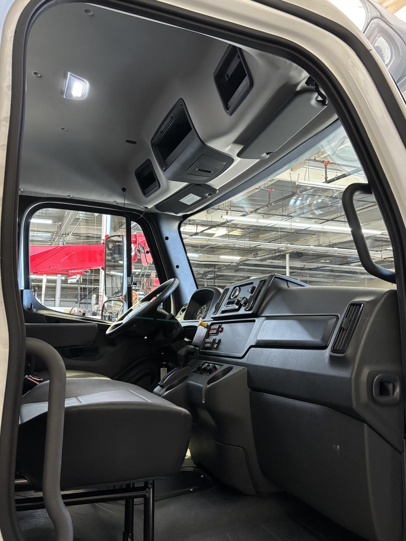 2025 M-2 Alum. 132" BBC Cab; Cummins 6.7L Engine 260HP 660lbs Torque. Cummins Exhaust brake.Horton HT650 Frontal Air On/off Engine fan. Clutch. 2100 RDS Automatic Transmission 6 Speed. Phillips-TEMRO 750 Watt/115 Volt block heater. dash Mounted T-Handle Cable Shift Control w/ park brake position. Synthetic Transmission Fluid.Synthetic 75W-90 Front Axle lube 10,000# front suspension. ARS-19.0-2 19,000# R-SERIES single rear axle. 4.88 Rear Axle Ratio.SYNTHETIC 75W-90 rear Axle lube. Airliner 18,000# Rear Suspension. Manual Dump Valve for Air Suspension. - Air brake package. Air Dryer w/Heater. 120KSI (Frame). 50 Gallon/Rectangular fuel tank aluminum: Alliance Fuel filter/Water separator with Primer pump. 255/70R22.5 Tires. Alum. 22.5X8.25 10-Hub pilot disc wheels. Dual West Coast Bright mirrors. 8" bright finish convex mirrors mounted under primary mirrors. Non-operating wing windows. Opal Gray Vinyl Interior. (2) Cup Holders; Heater, Defroster & Air Conditioner. Power windows. Single passenger seat. Air ride driver seat, Rear bench seat. Adjustable Tilt and Telescoping Steering Column. (6) IGN Controlled Extra Switches to junction block AND 1 Circuit at 30 Amp. Windshield Wiper motor with Delay marker light Switches self-canceling turn signal Switch with dimmer, Washer/Wiper & Hazard in Handle. Idle up, Cruise control. 22.5 Aluminum wheels 25,500 GVWR.