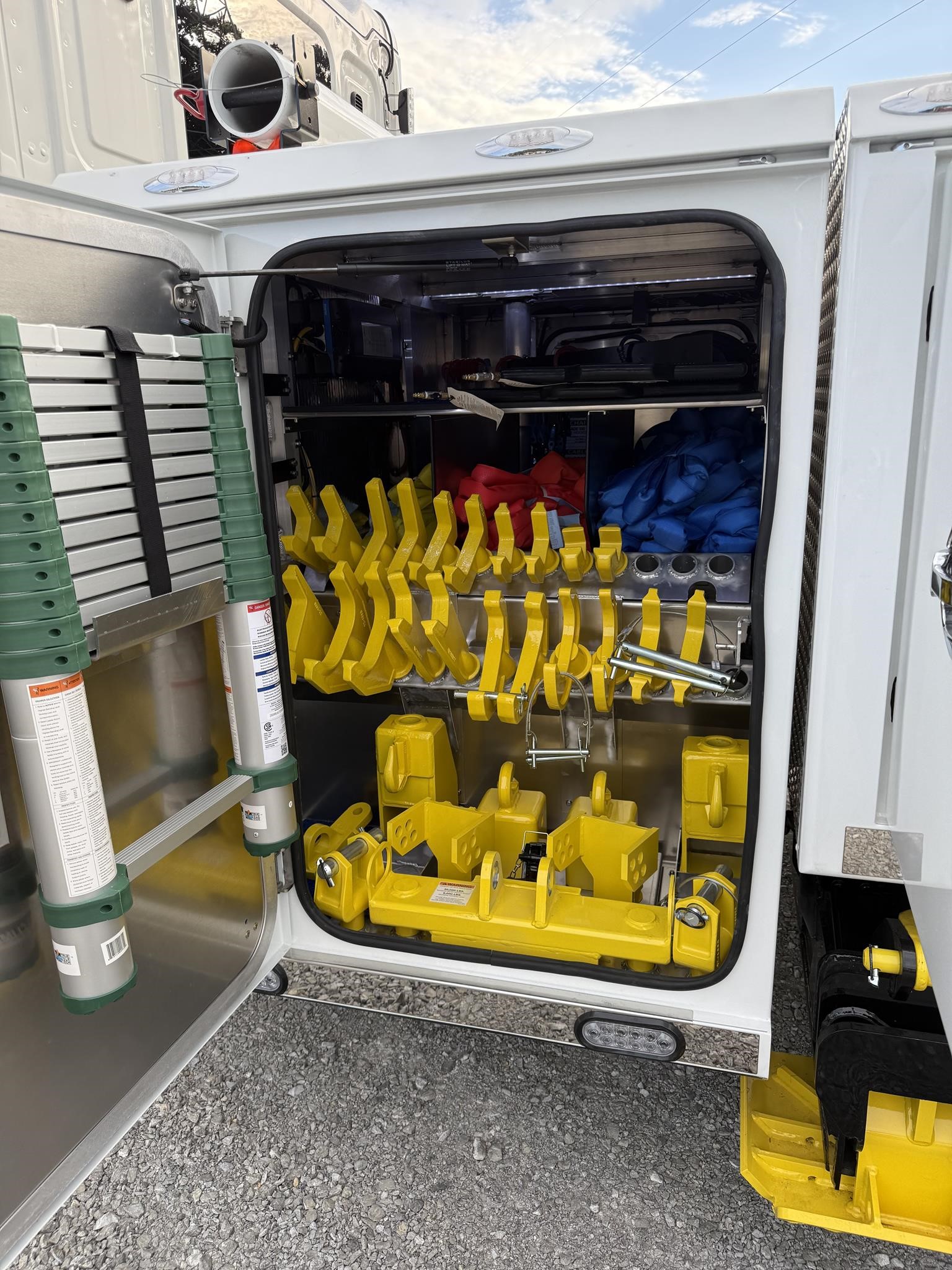 2025 Western Sta 49X 600HP 15.6L Detroit. 18 speed. 20,000lb Front axle. Front Air Disc. 46000lb Rear axle. 4.30 Rear Axle Ratio. Driver-Controlled differential - Both Tandem rear axles. (1) Interaxle lock valve, driver-controlled Diff. lock forward-rear axle valve and (1) rear-rear axle Valve. Rear Air Disc Brake - rear axles. 46,000lb Airliner suspension with Dump. 60-gallon & 80-gallon fuel tanks. 183 CB, front tires, Michelin XZY-3 425/65R22.5 20 PLY , Michelin Rear 11R 24.5 Tires. 36" Trench Low Roof Sleeper. 121 BBC Aluminum cab. Dual 26" Hadley Air horns. Switch & wiring with stainless steel brackets mounted outboard sleeper roof for (2) customer-provided beacons. Dual-stage intelligent LED Headlights with a Heated Lens System. Visor-mounted LED Marker lights. White LED Fog lamps recessed in the bumper with Rock Guards. LED Spotlight over LH Door. C-bar Mirrors systems with dual heated mirrors, integral heated convex, Dual remote, turn signal, stainless steel back cover & bright C-bar. X-series premium interior trim level package, charcoal black vinyl, up-level interior. Carbon with premium teak accent, keyless entry. Elite 2.0 Highback air suspension driver seat & Passenger seat- W/2 Air lumbar active bolster integrated cushion extension, tile adjustable shock map pocket, heat & ventilation. A black suspension cover is required for both the driver's and passenger's seats. Dual Armrest black Laredo leather driver seat cover with diamond-stitched center panels & embroidered logos, Sleeper curtain, Adjustable tilt & telescoping steering wheel column. 4-SPOKE 18 INCH (450MM) leather-wrapped steering wheel with chrome switch bezels. Tractor package. Hendrickson FM 20 Tough lift 20,000# NON-STEER PUSHER Suspension, N-Series Drop center axle.. Hendsickon 16.5X7 CAM psuher/Tag Brakes, Double anchor, fabricated shoes