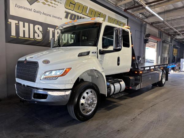 2026 International Model MV Extended cab. Cummins ISB 6.7L, 260HP @ 2,300 rpm, 660 lb-ft @ 1,600 rpm, Allison RDS-2200 6 Speed Auto, Air Brakes, Air Dryer Heater, Exhaust Brake, Front Axle: Dana-Spicer I-Beam 8,000lb w/ Shock Absorbers, Rear Axle: Dana-Spicer 19,000lb rear axle.. , 20,000lb Air Ride Suspension, 4.88 Rear Axle Ratio, Chrome Bumper, black Grille, Air Ride Driver Seat,& Passenger Seat, rear bench seat. Idle Up, Cruise Control, Tilt-Wheel, AM/FM/CD/MP3 w/ Bluetooth, Air Horn, Engine Block Heater, Dual 40-50 Gal Alum Fuel Tanks, 7 Gal DEF Tank, Power Windows, Power Door Locks, Power heated Mirrors. A/C, 255/70R22.5 Tires w/ 22.5 Alum Wheels, Cup holders.Visor 25,500 GVWR,Extended Warranties.- Engine Warranty: 5 yr / 300k miles PPI & after treatment, and Tranny Warranty: 7 yr / Unlimited Miles.