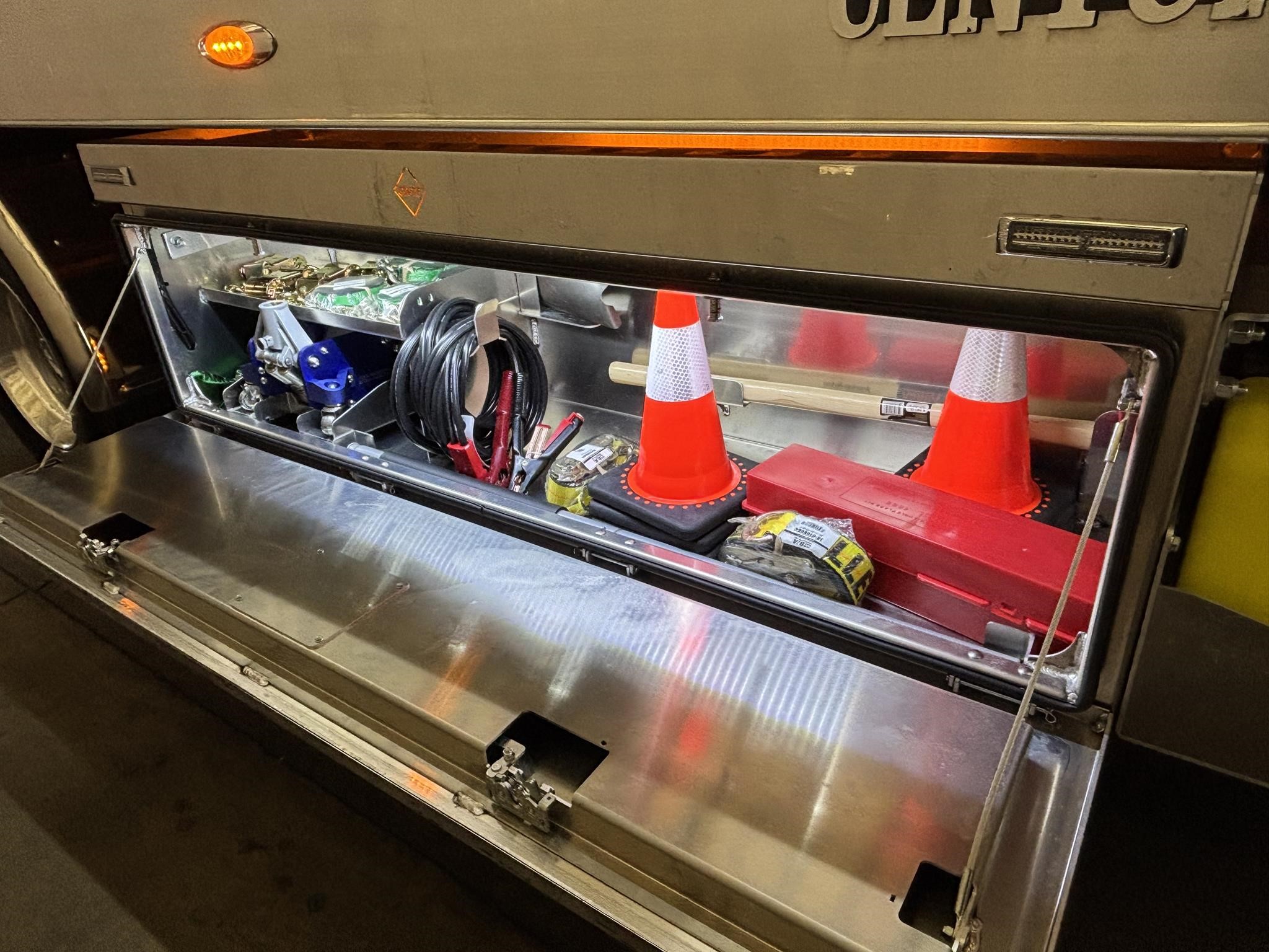 TB: Toolbox, Aluminum, 69", Driver-Side, SS Door, Integrated Top Tray, Equipment Brackets
