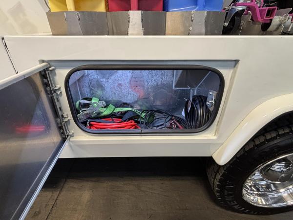 Rating (first layer of drum) each Winch, 12,000 lbs., Diameter and Length (Each Winch), 7/16” x 150' IWRC, 60” Aluminum Modular Body with 1 Compartment Per Side, Safety Chains, 5/16 Grade 70, Safety Chain Storage Pockets