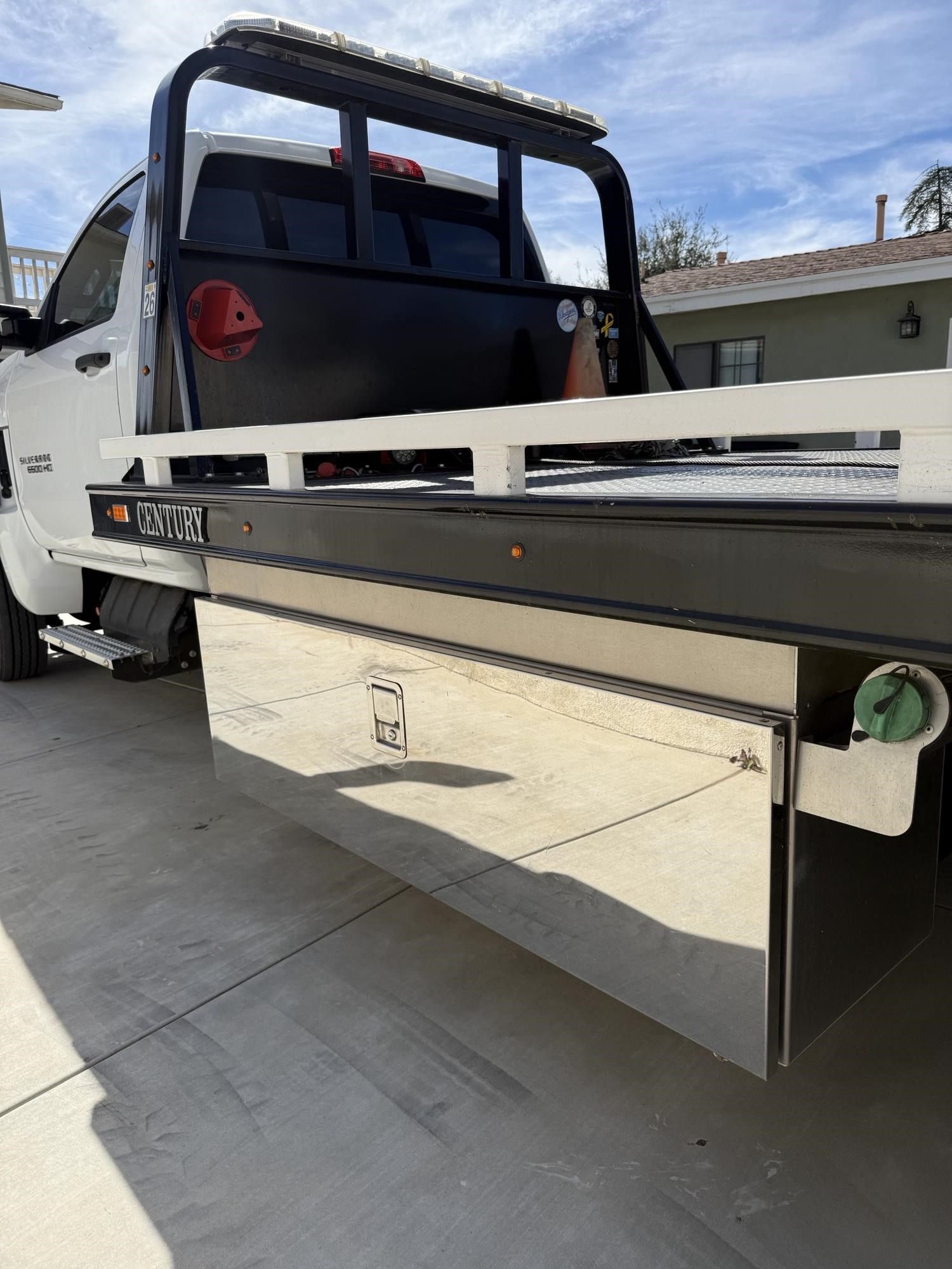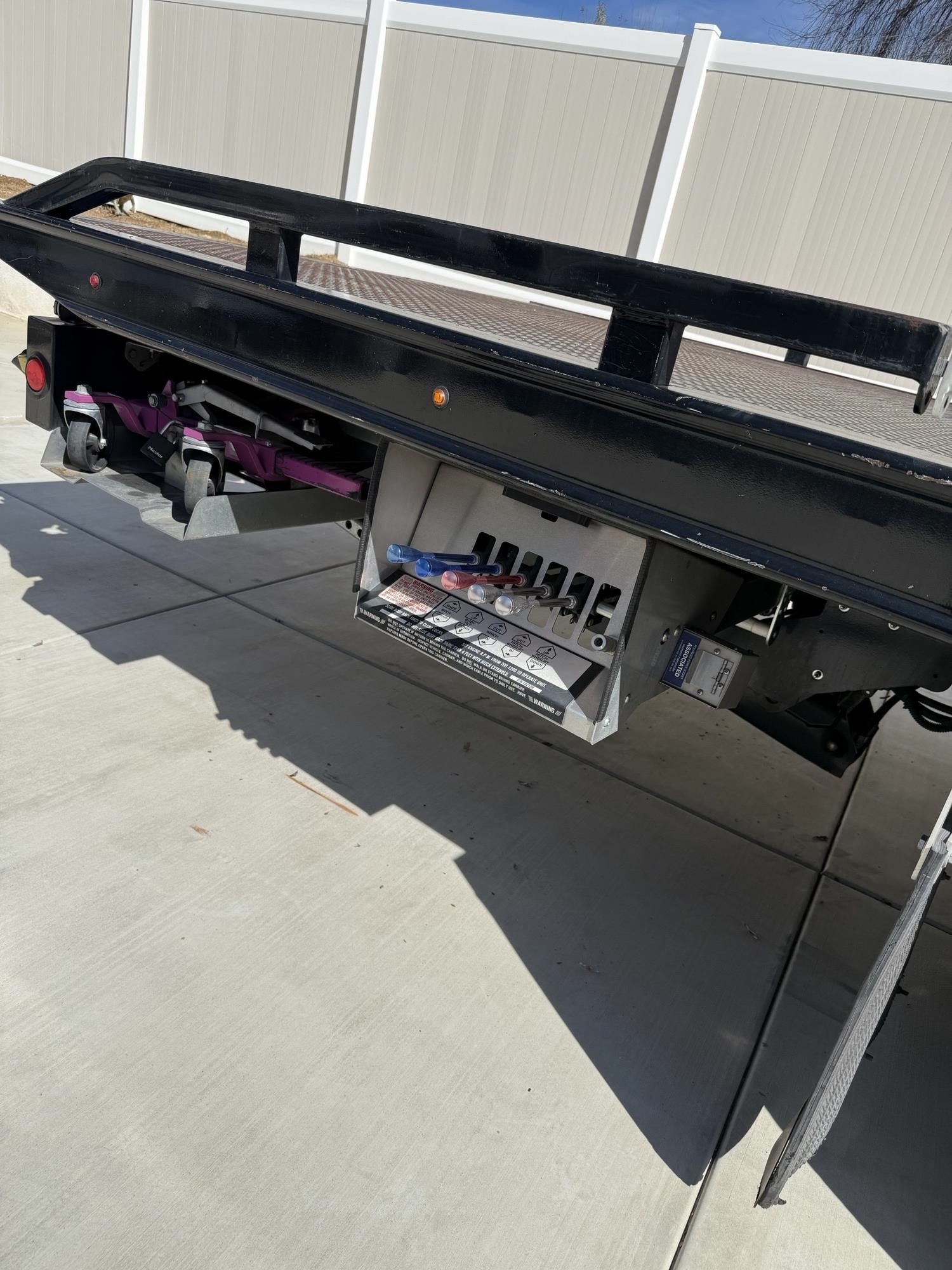 21 FT Steel carrier with an independent wheel lift. Full-Length Slide Pads. 8,000lb Winch. Hydraulic pump. Painted Black. Backup lights, backup Alarm. Tow light sockets. Bed anti-tilt lockout/ right and left Chain Trays. Safety Chains (2-front, 2 rear) Dual lighted controls. FMVS 108 Lighting group. Wheelift safety pin. Full-height cab protector.Stainless steel tail light plates. Cable Roller guide. Cable tensioner. Positive lockdown. Prewired Junction box. Straps and Ratchets for Wheelift., Ratchets, 11 Chain lock package body- Body Serial # ST12L2D211314