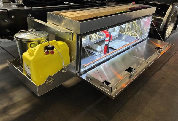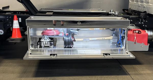 TB: Toolbox, Aluminum, 69", Passenger-Side, SS Doors, Integrated Top Tray, Equipment Brackets