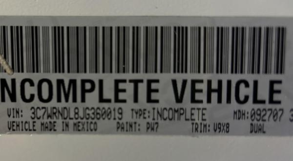 4x4 PackageRAM 5500 SLT Reg Cab w/ Cummins 6.7L I-6 OHV Direct Diesel Injection, 24 Valve Intercooled Turbo, 325HP @ 3,000 rpm, 750 lb-ft @ 1,600 rpm, 136 amp Alternator, 6 Speed Automatic Aisin AS68RC, Exhaust brake. Engine Block Heater, 120" CA, 4 Wheel Disc Brakes w/ Front and rear Vented Discs, Non-Independent Front Suspension, Rear Leaf Suspension, 4 Wheel Anti-Lock Braking System, Daytime Running Lights, Dual Air Bags, A/C, 5" Touch Screen AM/FM/CD Radio, Cruise Control, Power Windows, Power Door Locks, 40-20-40 Split Bench Seat, Vinyl Black Material, Upfitter Switches (5). 19,500 GVWR, Chrome Cab Steps, 22 Gal Fuel Tank, 225/70R19.5 Tires w/ 19.5 Alum Wheels.