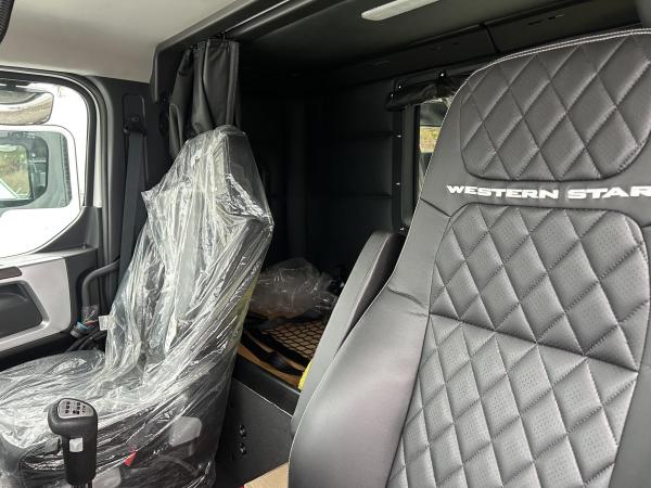 2025 Western Sta 49X 600HP 15.6L Detroit. 18 speed. 20,000lb Front axle. Front Air Disc. 46000lb Rear axle. 4.30 Rear Axle Ratio. Driver-Controlled differential - Both Tandem rear axles. (1) Interaxle lock valve, driver-controlled Diff. lock forward-rear axle valve and (1) rear-rear axle Valve. Rear Air Disc Brake - rear axles. 46,000lb Airliner suspension with Dump. 60-gallon & 80-gallon fuel tanks. 183 CB, front tires, Michelin XZY-3 425/65R22.5 20 PLY , Michelin Rear 11R 24.5 Tires. 36" Trench Low Roof Sleeper. 121 BBC Aluminum cab. Dual 26" Hadley Air horns. Switch & wiring with stainless steel brackets mounted outboard sleeper roof for (2) customer-provided beacons. Dual-stage intelligent LED Headlights with a Heated Lens System. Visor-mounted LED Marker lights. White LED Fog lamps recessed in the bumper with Rock Guards. LED Spotlight over LH Door. C-bar Mirrors systems with dual heated mirrors, integral heated convex, Dual remote, turn signal, stainless steel back cover & bright C-bar. X-series premium interior trim level package, charcoal black vinyl, up-level interior. Carbon with premium teak accent, keyless entry. Elite 2.0 Highback air suspension driver seat & Passenger seat- W/2 Air lumbar active bolster integrated cushion extension, tile adjustable shock map pocket, heat & ventilation. A black suspension cover is required for both the driver's and passenger's seats. Dual Armrest black Laredo leather driver seat cover with diamond-stitched center panels & embroidered logos, Sleeper curtain, Adjustable tilt & telescoping steering wheel column. 4-SPOKE 18 INCH (450MM) leather-wrapped steering wheel with chrome switch bezels. Tractor package. Hendrickson FM 20 Tough lift 20,000# NON-STEER PUSHER Suspension, N-Series Drop center axle.. Hendsickon 16.5X7 CAM psuher/Tag Brakes, Double anchor, fabricated shoes5-YEAR 400000 MILES Engine - Detroit. Warranty including after treatment